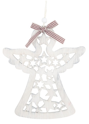Anděl dřevěný na zavěšení 14 x 16 cm, světle šedý